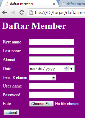 - Formulir pendaftaran harus di isi dengan lengkap. Register di fitur umum pilihan kategori hanya ada member. User dan password tidak boleh sama.